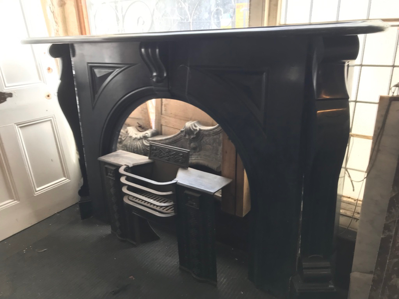 Large black marble fireplace - serpentine mantle |